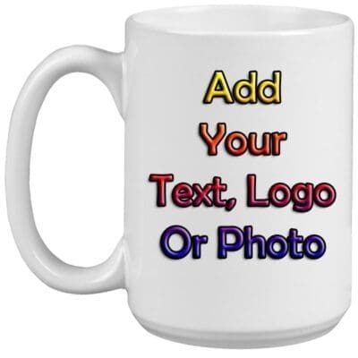 15 oz White Ceramic Mug Photos will be sized as appropriate to ensure fit to the mug. IMPRINT AREA: (LOGO WRAPPED AROUND MUG) 7 “(W) X 2 3/4″(H) – DISHWASHER AND MICROWAVE SAFE – “GRADE A” MUGS – 3 3/4″ HIGH AND 4 3/4″ WIDE INCLUDING HANDLE (3 1/4″ DIAMETER) – IMPRINT AREA: (LOGO ON 1 OR BOTH SIDES OF MUG) 2 5/8″(W) X 2 3/4″(H)
