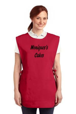 Enjoy crafting, cooking or serving in this easy care apron that shields your clothes from stains.