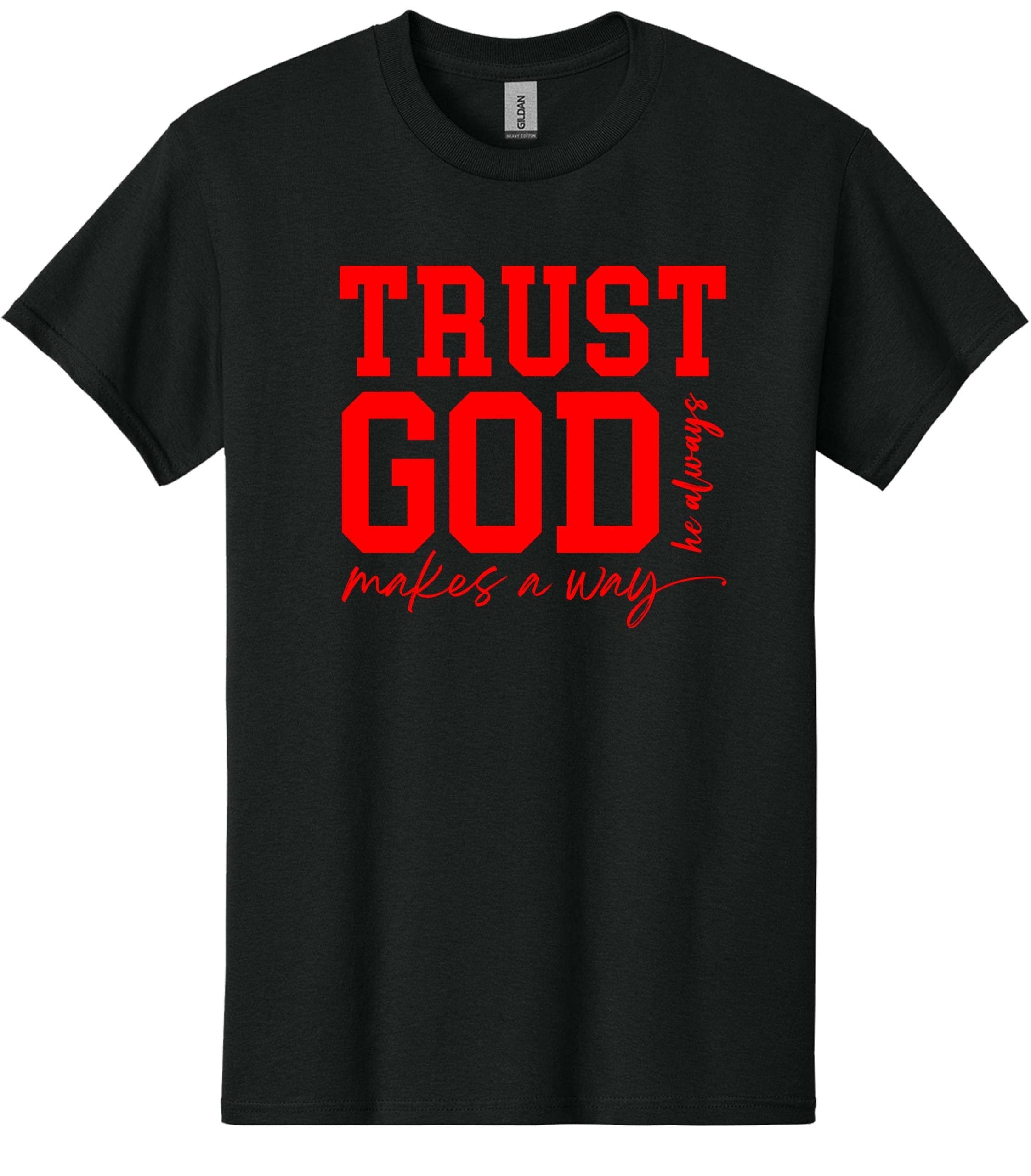 Trust God T-Shirt – Red On Black